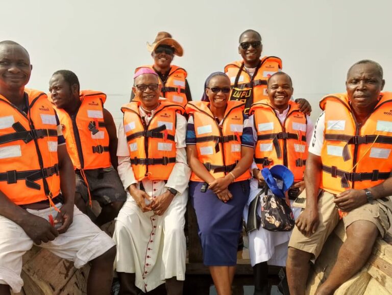 Rev. Fr. Eric Ankamah, SVD, Assisting Priest at St. Mary Mother of God Parish, Adeemra, and one of the newest arrivals to the Vicariate, who was part of the delegation to the lake, could not but celebrate the gift of life jackets, which he admitted made him feel “relaxed, free and safe” on the lake, as opposed to the fear and tension he felt the first time he went on a boat without a life jacket.